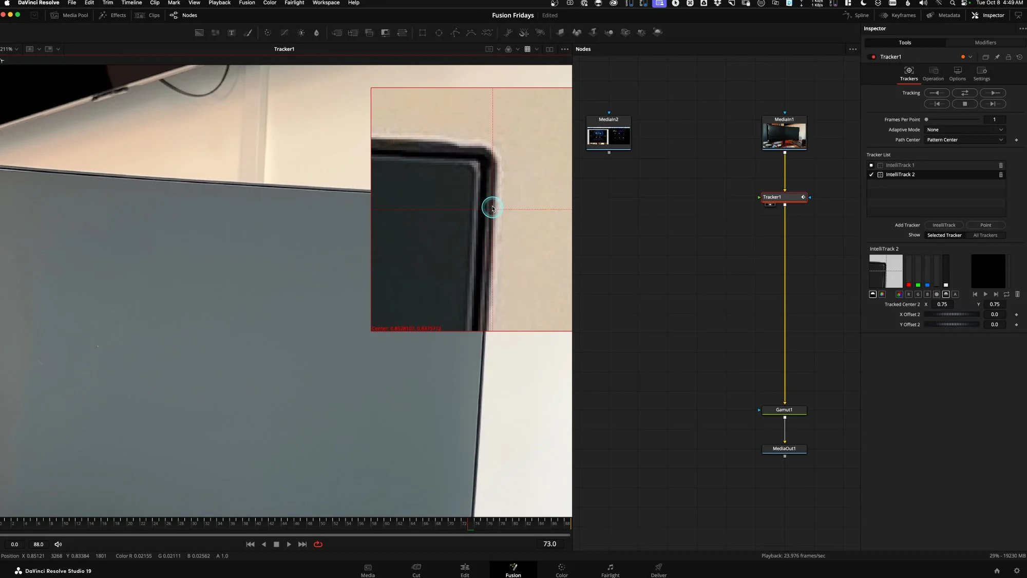 In DaVinci Resolve Studio 19, tracking is made more simple with the default IntelliTrack. This supersedes the industry standard pattern-based contrast-detecting tracker that we have used for decades. The advantage to using a point tracker for a corner pin to place a screen into a scene is that you can manually modify specific points and deal with occlusions on the tracking data itself. Planar trackers are amazing, too, but the more tricks you have in your VFX toolkit - the more shots you will be able to solve.