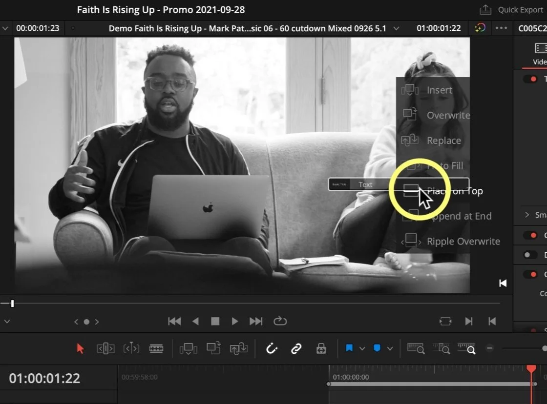 As a bonus tip, if you mostly use this drag-and-drop trick with place on top, you can set this as the default in user editing settings with the checkbox for “timeline overlay retains the last performed actions”. This means you don’t need to drag it specifically to that far-right overlay box.